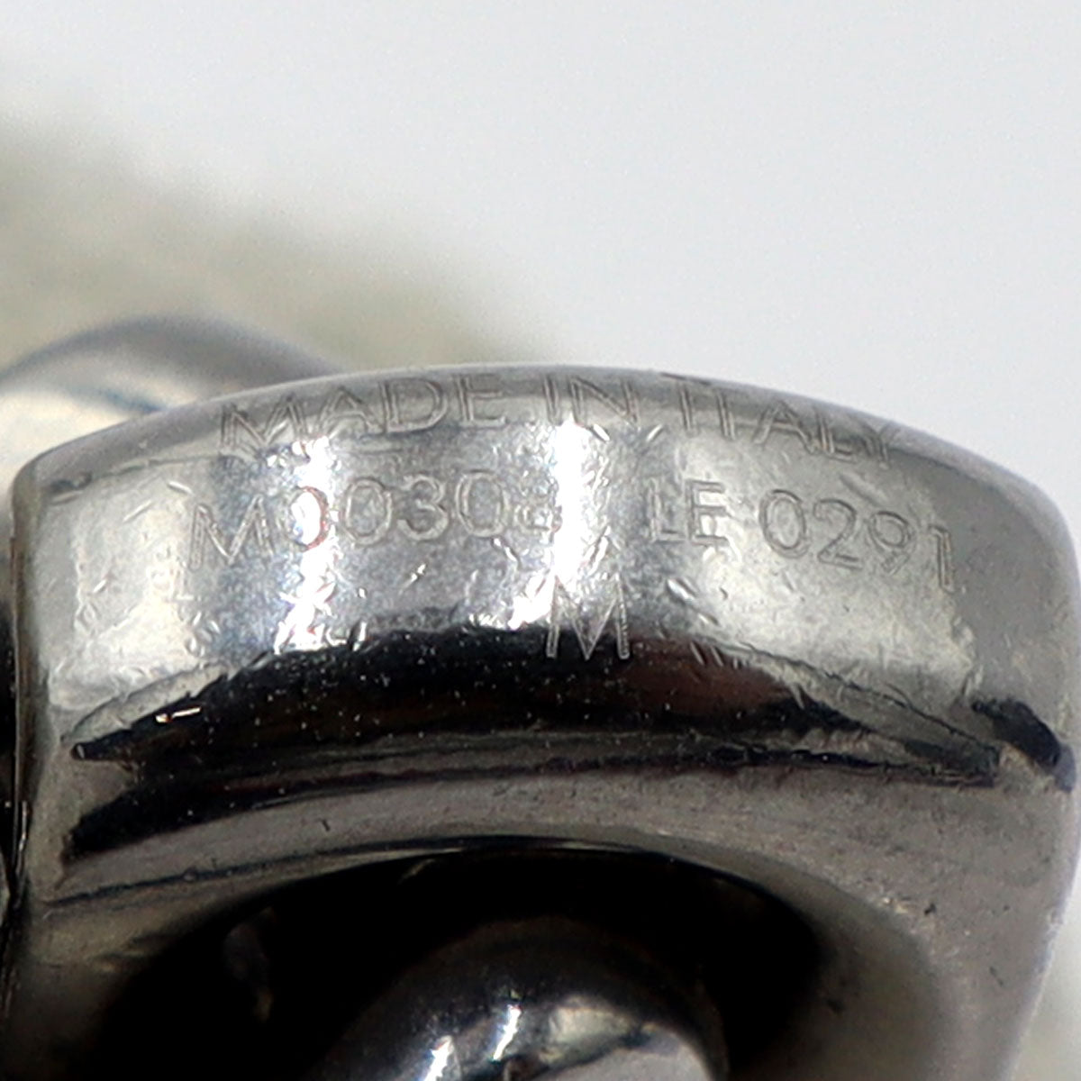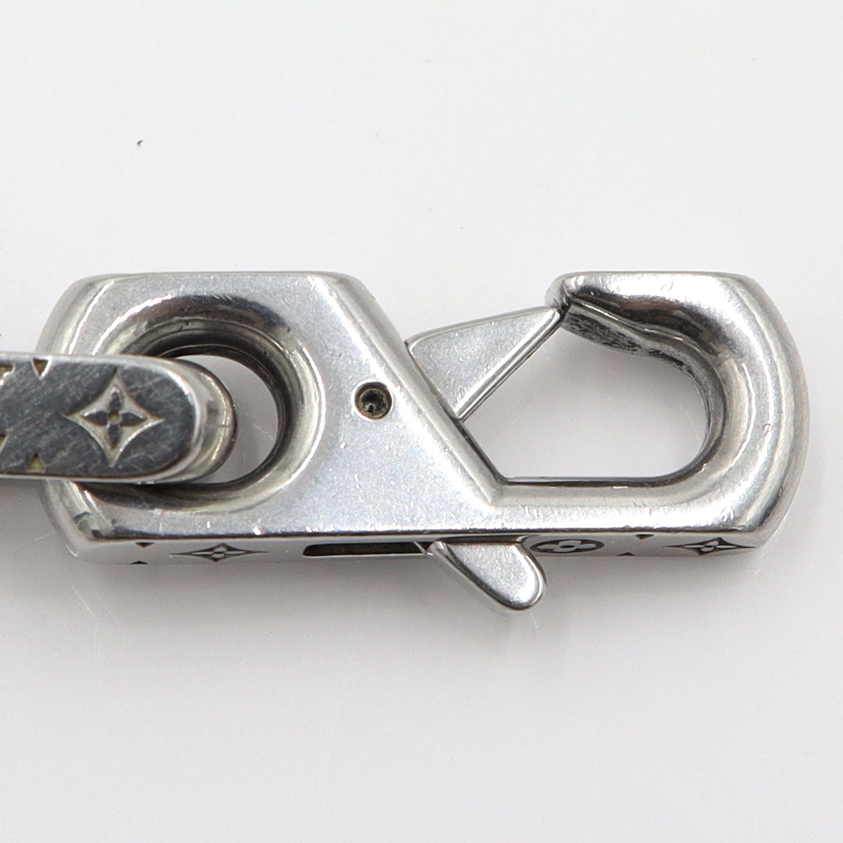 シルバーカラーのメタルで象った大ぶりのチェーンに、ルイ・ヴィトンならではのモノグラム・パターンを精巧に刻印しました。
