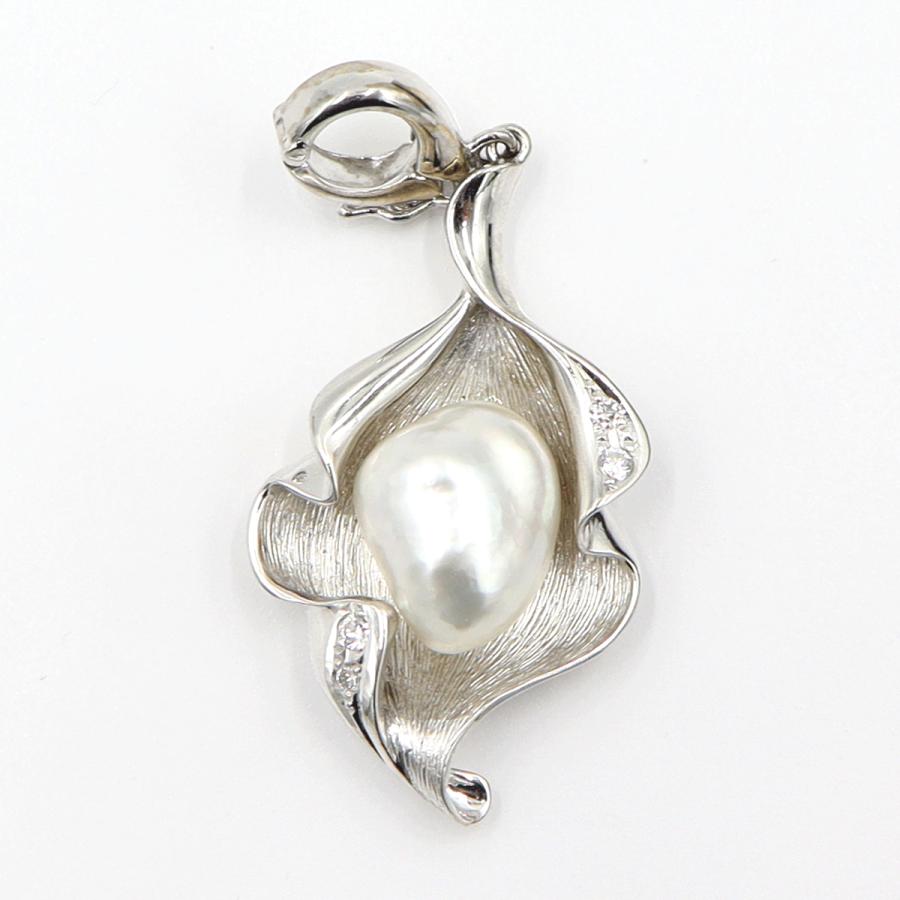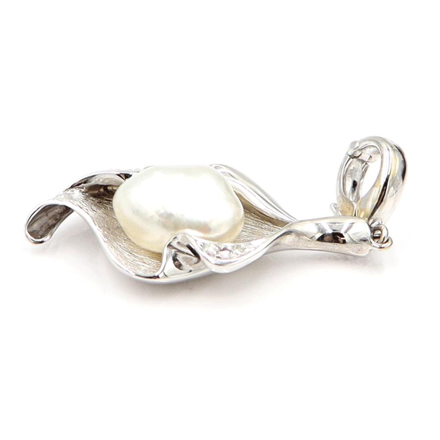 K14WGケシパールペンダントトップ D0.07ct 重量5.54g(石の重量含む)(中古)
