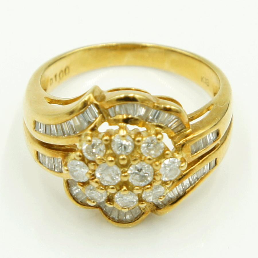 K18ダイヤモンドリング「フラワー」D1.00ct リングサイズ13号 重量6.57g(石の重量含む)(中古)
