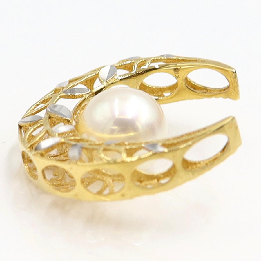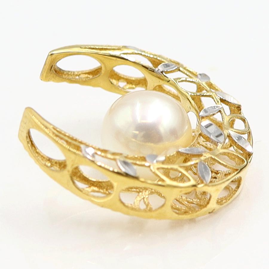 K18パールペンダントトップ 2WAYリバーシブル パールサイズ約7.7mm 重量2.12g(石の重量含む) (中古)