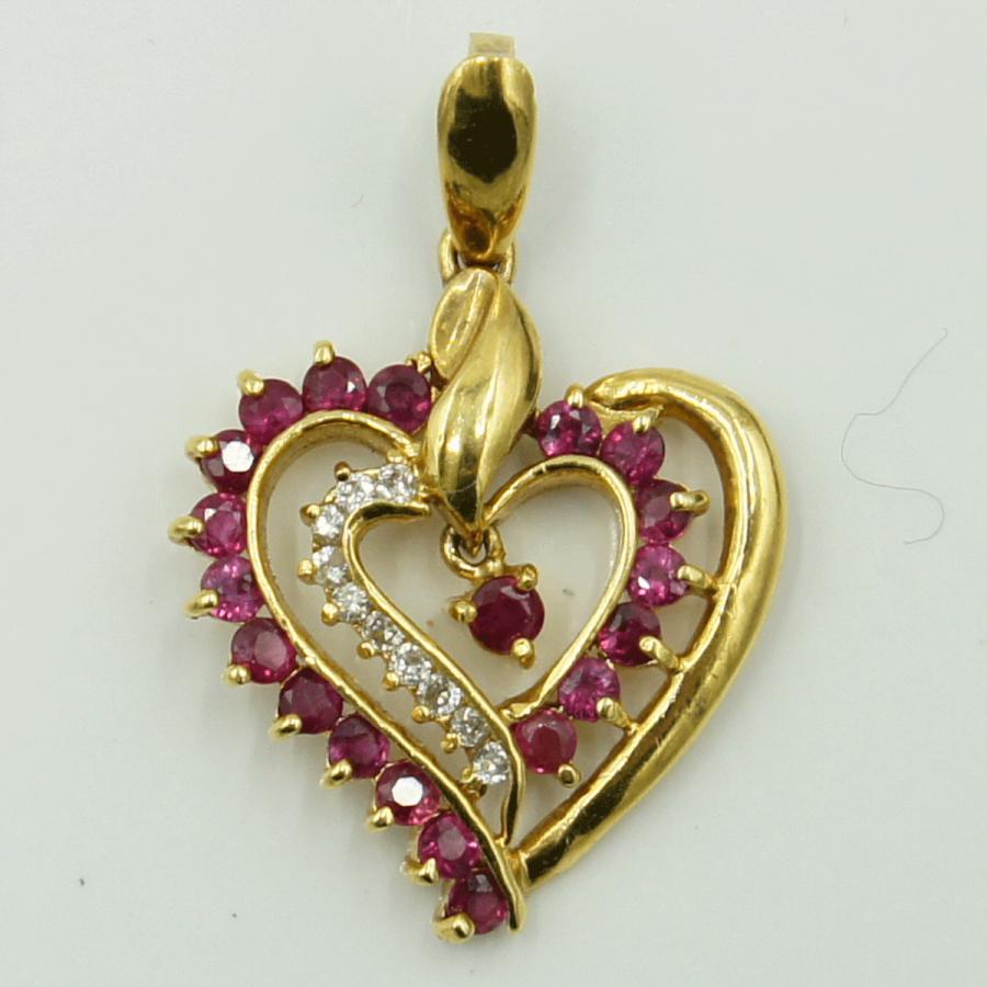 K18ルビーダイヤモンドペンダントトップ 「ハート」 R1.02ct D0.11ct 重量3.07g(石の重量含む) レディース(中古)